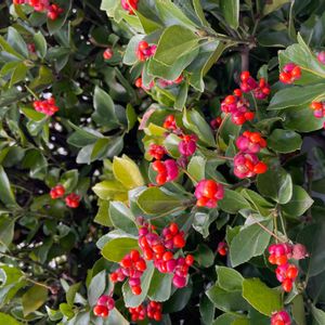 マサキの実 散歩途中、生け垣に かわいい赤い実発見 小さな喜び😊🎵👍️
