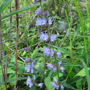 茂みの中の 涼やかな花 アキノタムラソウ🌿 (秋の田村草) 牧野公園のあちらこちらで 見つけました🫧🎶 *シソ科 *アキギリ属