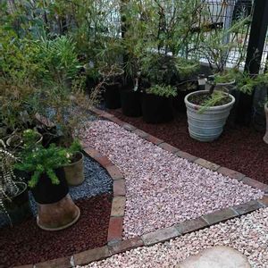 今日の昼からレンガ並べてセメント固め砂利ひきました。 アプローチの石は同じ色なかったので色違いに。 膝、腰痛いです。