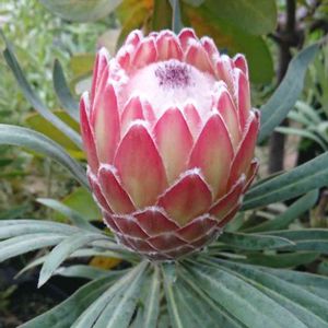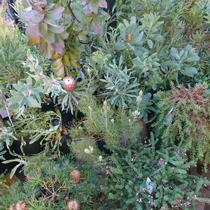 今日の庭から プロテアスサラ グレビレアココナッツアイス セルリアプリティーピンク バンクシアブラジオカルパ スサラの蜜なめました❗砂糖水