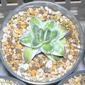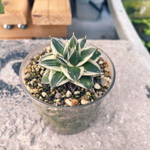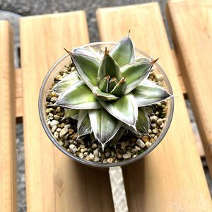 ボチボチと推移〜。(コッチは) 元気に育ってくれよ〜! 今のサイズで棘まで含むと68mm(3号鉢)、見映えが良くなって来ました。 晴れた日は遮光ネット下、曇り/雨日はLED下でぬくぬくと過ごされてます。不思議に葉の色が可成り濃くなりました。逆に白斑は白く、、。 面白いです。 で、、、。 買った(ヤッホィ) a型の薄中斑嬢は3日で溶けました。 orz (😭) 到着した時点で既に12〜3枚の葉が腐ってて、剥がしてリカバリーしたけど無理でした。 この時期の抜き苗て無理があるよね〜。 ま〜、無理😅