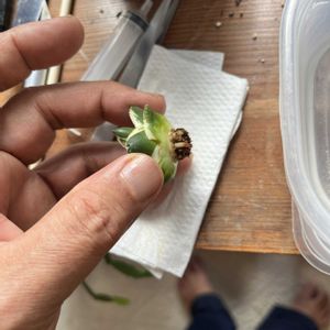猿の検証〜?(試験的観察 3.。/アガベ小話⑧.) 発根確認〜! (アガベって、、謎) 個体差がありすぎて訳がわからん! オキシベロン液(1/500)に12時間浸し、希釈して1/1000 に12時間漬けてみたのですが発根してますね。 こりゃ〜こりゃ〜。今までの悩み、何の苦労だ、、。 ※ 根本の小さい粒の方です。他も活性化してるみたい。 薬液無しの水耕に移行します。