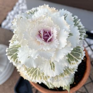 葉牡丹のつぐみちゃん🎀 吸い寄せられるかわいさ。 この紫がとても良い…。 寄せ植えにしようかと思ったけど、 単独で鉢に入れて飾ってます!