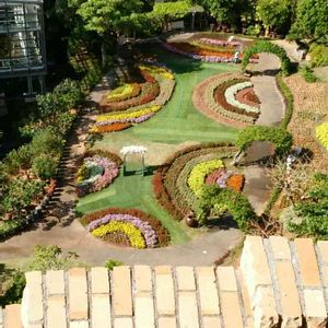 上から中庭を見おろした(ㆆ_ㆆ)ジーー