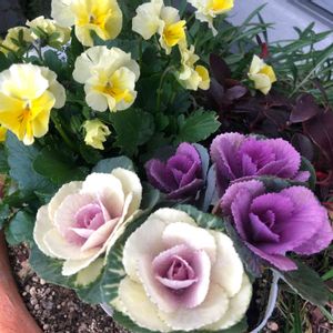 今日の花 ハボタン(葉牡丹) 数日前俣野別邸の帰りLucy grayに寄ることが出来ました。 色々なハボタンオンパレードでしたが結局は小ぶりで無難な種類を選ぶことに…😊 品種名はデュェットB&Y