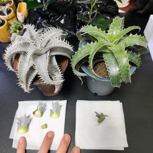 子株取り。 ディッキアの方は横山園芸の横山さんからもらったもの。メチャクチャ子株付ける株で、今までにいくつもいだか分からない。 ヘクチアは種から育ててる株なので、子株付けるくらい育ってくれたのが嬉しい。