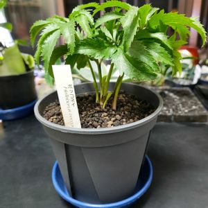3.5寸鉢が変形してたので植え替えた原種クリスマスローズ、ボッコネイ。 新しい根がしっかり出てたのでこれからが楽しみ。