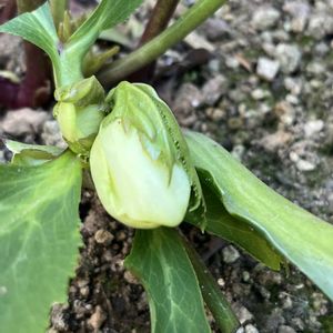 お庭植え 横山さんのシングルアイ✨ 去年はいっぱい咲いたけど、今年の花芽はこのひとつだけのよう🥺 でも順調に蕾がぷくぷくしてきてくれて嬉し😊