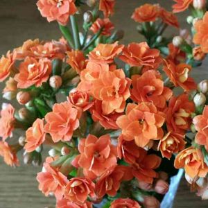 カランコエ、八重咲きオレンジ。 たくさん咲いたので切り花にしました。