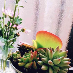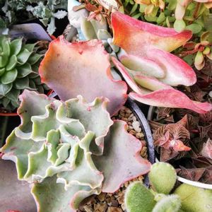 園芸店のセールで、質感の違う3種類寄せ植えと性懲りもなくデザートローズに手を出しました(。>д<) 手前の多肉は、多分、樹氷、レティジア、星の仲間かな⁉️ 温室で販売されてたので、春まで室内管理です🙆