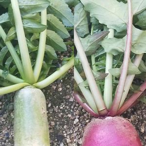 これも実家の畑にて。色んな大根があるんですね~! 綺麗な紅と白。