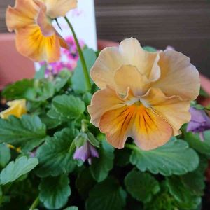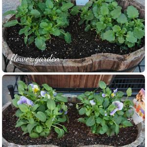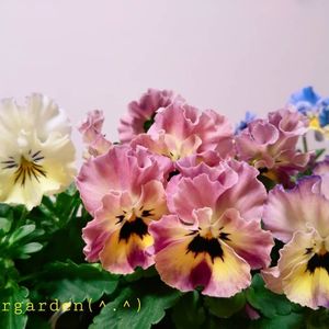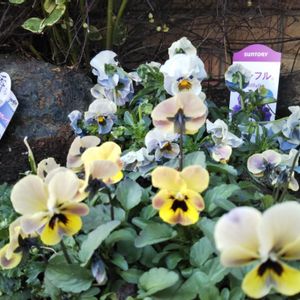寄せ植えのビオラ。「ミルフル」という名前が付いていました。フリルのような花びらが可愛いです(╹◡╹)
