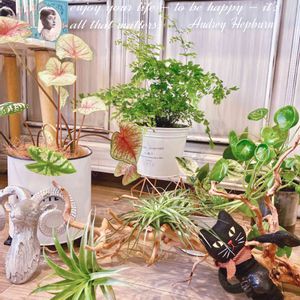 500pic ヾ(●︎´∇︎`●︎)ノ ワ~イ アジアンタム ピレアペペロミオイデス エアプランツ ペペロミア カラジウム クロネコ ヤギ Audrey Hepburn コツコツがんばったにょᕕ( ᐛ )ᕗ