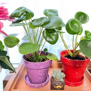 ピレアペペロミオイデスの兄弟?姉妹? 右の子は、根っこを長く取れたので、上の子より丈夫なはず。 左の子は、植え替えの時取れちゃった😱という感じで、ちょっとひ弱ちゃんです😭