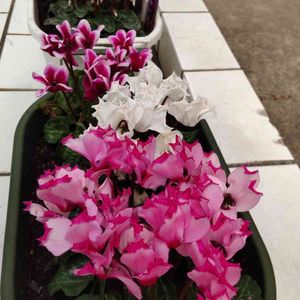 ガーデンシクラメンを小さなプランターに3鉢ずつ植えました🎶 一つは実家に持って行く予定だけど、惜しくなってあげるの止めるかも😂