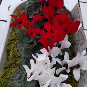 今日のお花ガーデンシクラメン🌺🌸💮 近所の花友さんの真似して、山で採って来た苔を敷いてみました😄