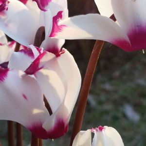 お日様が 西に傾いています ほんのり紅をひいた シクラメンも 茜色に染まります 今日のお顔は はにかんでいるよう
