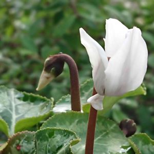 ☆今日のお花ガーデンシクラメン☆ 10月末にお迎えした子で、 夏越し出来なかった子の跡に 植え付けしました。 右下は夏越しした子で まだお花が少ないですし、 左下は、2年目の夏越し成功で 葉っぱは大きく元気ですが、 花芽がまだ短くて見えません🙄