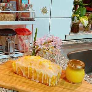 こんにちは😊 先月作ったレモン🍋ケーキ 納得いかなかったのでリベンジ👍 パウンドケーキのレシピと作り方で😁 グルデンフリーです💕 焼いてる間にレモンカード🍋も作りました❤️ 地植えのヒヤシンスも雨に打たれお辞儀してたのでカットして生けました🌸