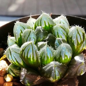 ●ススキノキ科 ツルボラン亜科 ●ハオルチア属 ●ハオルチア 玄氷錦①😻😻 葉先の美しさが上手く映らない…😅🤣 思うように伝わらないな…🤔