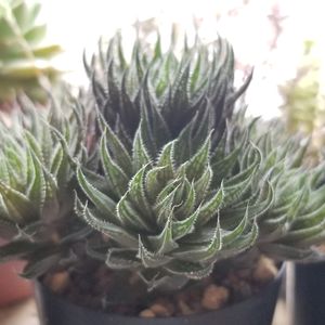 ●ススキノキ科 ツルボラン亜科 ●ハオルチア属 ●裏般若錦😻😻 おはようございます。🥱🥱🥱🥱 今の所、問題無さそうで元気な状態です。☝️🤓 新芽も若干成長してきてる感じ。✌️😁 今日は、ほぼ曇りだそうですがたまに晴間に変わるそうです。☝️😅 しかし、最高気温31度だそうなので、蒸し暑くなる?🤣🤔🤔🤔 さて、仕事しなきゃ。😅😅😂