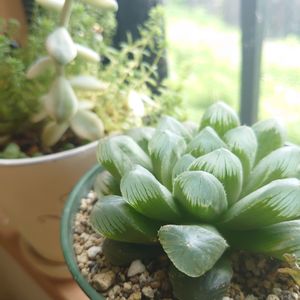 ついついお持ち帰り(๑•̀ㅂ•́)و✧ 名前はわからないけど💦 前回のハオルチアは1ヶ月もたたないうちに我が家の食いしん坊わんこに食べ散らかされたので、今回は無事に育ちますように☆。.:*・゜