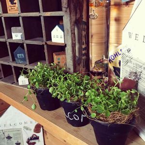 黒板の塗料が好きでよく使ってます 黒塗りの鉢が可愛いしチョークで文字も書けるからお気に入り 黒とグリーンの色合いが一番好きかもしれないなぁ… 家型の雑貨はハンドメイド!