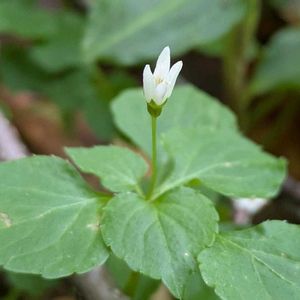 タニギキョウ 🌱キキョウ科 タニギキョウ属 ✽軟弱な多年草で高さは20cm程度 ✽地表を伸びる根茎でまとまって生える事が多い ✽互生する葉は広卵形で先は尖らず、裏面は時に紫色を帯びる ✽花は茎頂から出る長い柄にふつう1個つき、花冠は5裂して径5〜8mm、紫色を帯びる事もある ✽雄しべは5個、柱頭は3裂 川辺でしたがたくさん咲いてました♡🍀