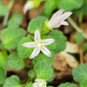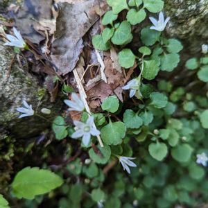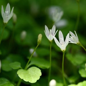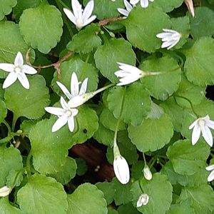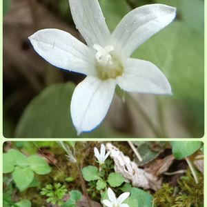 タニギキョウ(谷桔梗) *キキョウ科タニギキョウ属 花期は5〜8月 北海道〜九州の山間部の森林の木陰の水気の多い場所によく生える。渓流沿いやコケに混じるように 小さな群落を作ることが多い! とても小さな漏斗形の花を上向きに咲かせます。 花弁は白 またはやや淡い紫を帯びる! 花が終わると姿を消してしまうそうです。 10月頃に新芽が伸びてそのまま冬を越してまた4月に開花する「冬緑性」と言う性質があるのだそうです。 5月1日撮影