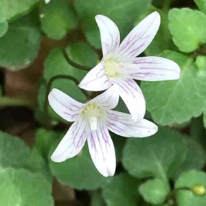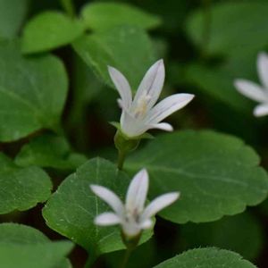 タニギキョウ ☘️ 花冠は5裂して径7~10㎜ほどで、紫色を帯びることもある。 雄しべ5個、花柱は3個 小さくて可愛い花です💕 🌿キキョウ科