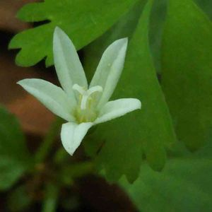 タニギキョウ(谷桔梗) キキョウ科タニギキョウ属 山道沿いなどで見かけられる5〜8mmの小さな白い花です。