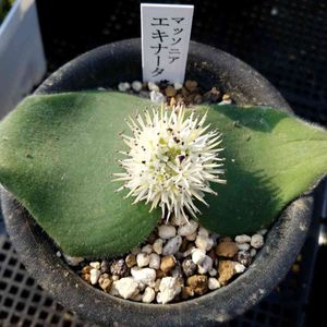 マッソニア ジャスミニフローラ💠 雄蕊のヤクの色が紺→グレー→茶と変わっていきます。 うちに来て4年目、そろそろ分球して欲しい。