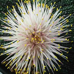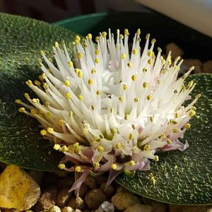 マッソニア・ロンギペスが満開。 外側から中心に向かって 咲いて行きます✨ お花はシトラス系の良い香り。 自家受粉するようなので 頭を優しく撫でておきました😋 雄しべはわかるけど、雌しべは何処なの? って良く見たらうっすら色付いたのが雌しべでした😁