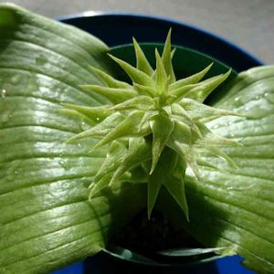 マッソニア プスツラータの子株撮ってみました😉 親株の鉢は5号、子株小さい‼️😱😱😱 10月後半ぐらいに発芽したと思います(うろ覚え)