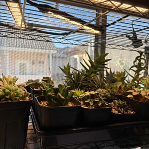 20251114 今朝はスッキリと晴れ上がった薩摩地方です、台風🌀はこちらにやってくるのでしょうか? ①万象 “渦潮”さん。水吸ってパンパンの窓です🤗花芽が上がってきました。エケベリアよりずいぶん遅い時期なんですね🧐✍️ ②玉扇 “貴婦人”さん。こちらも花芽が上がりそうです。良き良き🤗 ③ブルーベリームーン×クスピダータさん。鉢上げしました。花ちゃんの種まき土、表面がカチコチになっちゃうんですよね。中の方はサラサラのままなのですが💦通気性も悪そうで・・・😭親苗の土以上に迷宮入りしてます😱😭