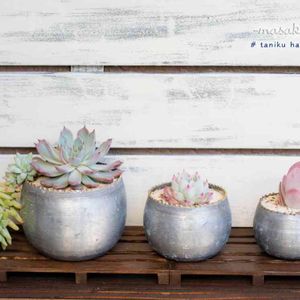 3部作‼️出揃いました ♪ヽ(*´∀`)人( ´∀`)人(´∀` )♪ 左から、カナッペさん+樹氷さん 中央、チワワエンシスさん 右、デザートローズさん それぞれ、大きさの違う同じ器に植えました。 左の一番大きな鉢のカナッペさんが、最近まで花を咲かせていたので、しばらく植え替えるのを待っていました。 他ふたつはだいぶ前に植えました。 やっと、投稿o(*≧∀≦)ノ 【masakoの多肉No.48】 【masakoの多肉No.26】