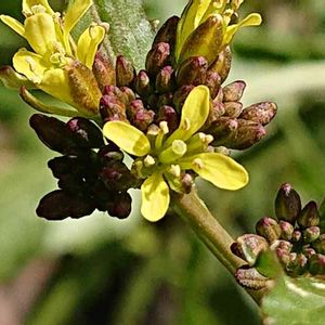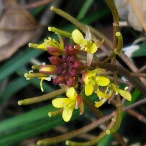 名前がわかりません。 散歩道の脇に咲いていました。 すごく小さい黄色い花です。 拡大して見てください。 navy さんに「イヌガラシ」と教えてもらいました。 3mmぐらいでしょうか。