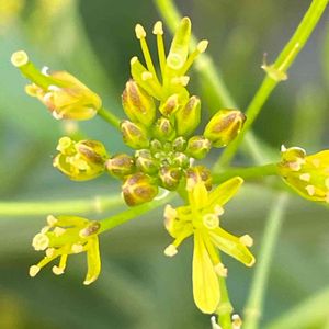 散歩の途中🚶♂️ お寺の池の淵に水に浸かって咲いていました。5㎜位の可愛いい花です💕 池に落ちそうになりながら撮りました😂 アブラナ科イヌガラシ属 1〜越年草 犬芥子 原産地:日本在来種 開花期:4-9月 花は径4-5㎜の黄色い4弁の十字状花を総状につける。 水田の畔などのやや湿った場所に生える雑草です。