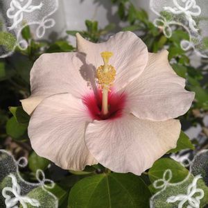 アドニス🤍💞🤍ホワイト🌺ハイビスカス 外から窓越しに室内で日向ぼっこの笑顔