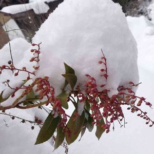 今日雪かきの時に📷✨ お庭のアセビに積もった雪❄️がおにぎり🍙みたい🤭 もうこれ以上大きなおにぎり🍙はムリ😅