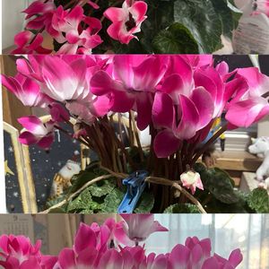 今日のお花シクラメン🤗 またかと言わないでね😅❣️ 今月何回も出て来てる可愛いお花の試練の物語り📕 1番上⬆️12/12のこの子🥲 シクラメン育て方YouTube見て、お外で日に当てて風にも当てると良いでしょうとあったので、半日お外へ・・・😳😱😫 しなしなで大変な事に💦 真ん中➡️茎の所を麻紐で軽く縛って戻せる・・カモ・・とあったので、寒目の玄関の定位置に一晩置いておいたら朝には有る程度は復活していて🥰💞本当にごめんなさい🙏🙇♀️ お花はやはりダメになったのも何本かあり、嫌だったのね🤢 下⬇️今日12/27の子数えてみたら35🌸有りました😘数も減って蕾も小さくなって来てしまっているけど、来春まで咲いてくれると嬉しいです🤗 今日も午後から仕事頑張る😤💪 今日も皆様にとって素敵な日になります様に🥰💞✨✨✨