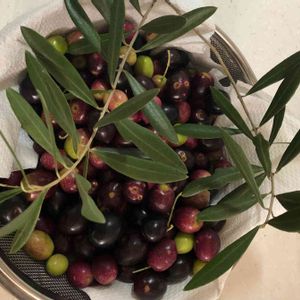 🌿オリーブの実🌿 木が大きくなり過ぎて取るのが大変でした😅 850gありました。 塩漬けでアク抜きします。