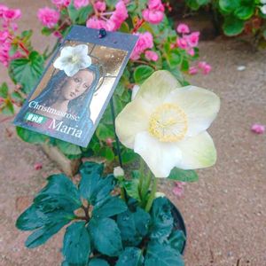 童仙房ゴールドコレクション クリスマスローズニゲルマリア様買っちゃいました😆 3.5号ポットで約800円で開花株をHCで購入♪😊 この時期から5月頃まで咲き続けるそう😆 うれし〜😊タグが🏷豪華✨