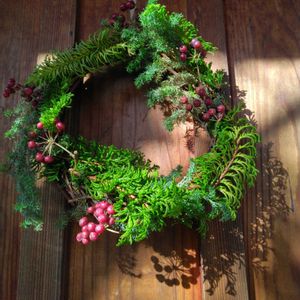 こんばんは🌃💫 玄関ディスプレイ🚪イロイロ ↖夏にドライにしたサンキライ。黄緑から黄色の実へ変化し長く楽しんでいます。今の時期の真っ赤なサンキライとは一味違って落ち着いた感じが気に入っています。 ↙昨年作った乙女葛のリーリース ↘2〜3年前のスワッグ ↗今年のクリスマススワッグ🌲 何年もとっておく作品もあったり…毎年大掃除の時にサヨナラする作品もあったり…イロイロです🤭 今日はキッチンの大掃除をしました。 冷蔵庫冷凍庫の中もスッキリしました🙌 今日明日クリスマス会の花友さんも多いのかな?? 素敵な週末をお過ごし下さいね🤗💕 今日も1日お疲れ様でした☺️