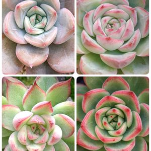 多肉ちゃんたちが、可愛い色になってきています❣️😍 ①赤い縁がキュートなシルエット😊 ②頬をほんのりピンクに染めたような、可愛いアルジェ💕 ③名前不明ですが、良い色になりつつあるエケベリア😃 ④葉っぱの数が豊かなオウンスロー🎶 ⑤シルバーの葉っぱが美しい、ダドレア・グリーニー✨