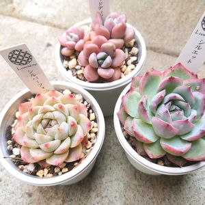 古株のシルエットさん🤗 優しい色でいつ見ても可愛い😍🩷 2枚目pic 冬の間は元気がなかったデレッセーナちゃん、最近復活したのか可愛くなってきました🥰 百均で見かけたらまたお迎えしたい多肉ちゃんです😁✌️