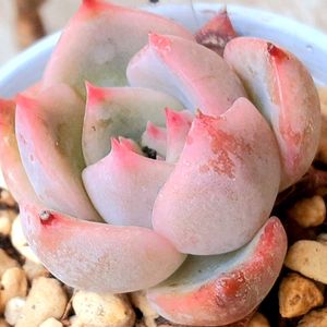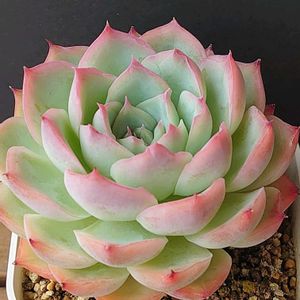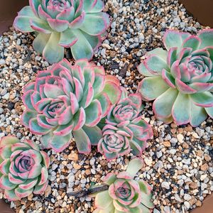 初代シルエットさん🩷 しばらく植え替えしてないから土がカチカチ😵 いい加減植え替えしないとダメだよね😅 でもかわいいからいじりたくないな〜(本当は面倒くさいw🤫🤗) 2枚目pic かわいいリトルミッシーちゃん🩷 ピンクのステッチがだんだん消えて、グリーンになってきてます💚 その中で1つだけ真っ白い子が!😲 これがオバケ(全斑)っていう子ですか?👻 これはこれでかわいいね😆