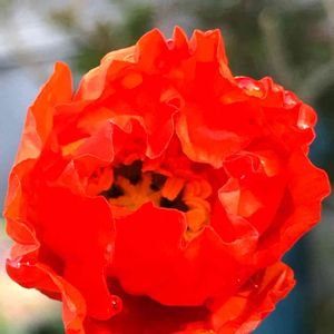 ポピー。 早朝、からを脱いで伸びをしてさぁ開きますよーって言ってます。 お昼には開いてました。 不思議な色🙄