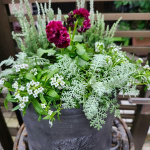 本日2つ目の寄せ植え作成は 深紅のロココ姫♥️•* 今はリーフばかりで少し寂しいけど ロココ姫がモリモリしてくれたら バランスとれると思うんだよなぁ~🤔