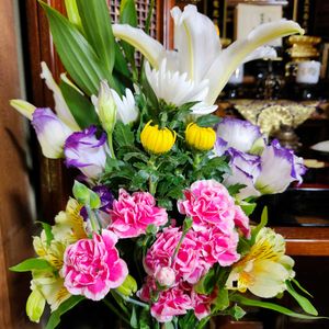 仏花ですが…💐 今日は母の7回忌でした😌 2月にしては暖かくお天気にも恵まれて 心地よく母への想いを 馳せることができました🙏✨